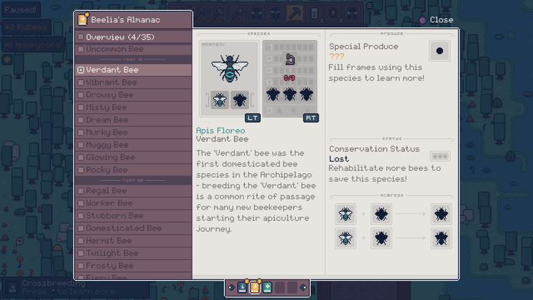 Azonban a méhek szorgos munkáját nem csak kizsákmányolni fogjuk, de akár vissza is adhatunk a zümmögő közösségnek: az Apico nagy hangsúlyt fektet a méhvédelemre és -nemesítésre is. A mesterséges kaptárakba hibrid királynőket pakolva komoly esély van rá, hogy egy teljesen új (pontosabban létező, de a szigetekről már eltűnt) fajt tudunk létrehozni. Az új rovarok vizsgálatával, majd szaporításával és végül sikeres elengedésével teljesen új méhfajokat tudunk megtelepíteni a szigeten, és persze ezek mind eltérő tulajdonságokkal, aktivitási idővel, illetve virágpor-ízléssel bírnak. Az első szigeten csak három alap méhfajta él megérkezésünkkor, a játékban pedig összesen harmincegynéhány faj nemesíthető ki – alaposan rá lehet tehát kattanni a domináns és recesszív gének keverésére, az optimális tulajdonságú jószágok létrehozására. A 2.0-ás verzióban ezekhez az alapokhoz már csatlakoztak a magányosan élő méhfajok, valamint már lepkéket is lehet ideiglenesen befogni és tanulmányozni.