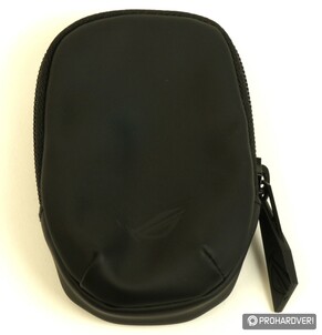 Az egyszerű kis dobozt kinyitva az egér mellett egy jópofa műbőr hordtáskát, két japán Omron D2F-01F(!) mikrokapcsolót, illetve a kiszedésükhöz szükséges fémcsipeszt és egy szintén fém ROG matricát találhatunk az információs füzetecske (pontosabban egy nagy, összehajtogatott lap) társaságában.