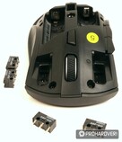 Az már nem volt annyira nagy öröm nekünk, hogy úgy össze van rakva a ROG Strix Carry, hogy nem is tudtuk teljes mértékben szétszedni. A fő gomboknál található két csavar még gond nélkül elhagyta furatait, de a hátulsó zónát összetartó csavarokat már nem sikerült megtalálnunk (pedig végre nem a négy ovális teflontalp valamelyike alatt vannak). Pontosabban lehetséges, hogy kivitelezhető lett volna a szétszedés, de mi szerettük volna egy darabban visszaszolgáltatni a tesztpéldányt a gyártónak, így inkább nem kezdtünk bele kétséges kimenetelű manőverekbe. Miután fejünkre hamut szórtunk, némi vigasz gyanánt beillesztettük cikkünkbe az eszköz robbantott ábráját.