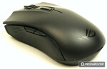 A szokásos bal- és jobbklikken és a kattintható görgőn kívül két oldalsó gombot, valamint egy felbontást váltó, on-the-fly cpi kapcsolót (és egy LED indikátort) találunk a jobbfajta műanyagból készült burkolaton (tehát összesen hatot). Az összeszerelés minősége teljesen rendben van, mondhatni masszív benyomást kelt a kis kurzorkergető: nem recseg-ropog semmi, bár mivel a felső szekció eltávolítható, ezen a területen egy fokkal kevésbé robusztus a tapintási érzet. Az oldalakra textúrázott gumírozás került, ami rendeltetésszerűen látja el csúszásgátló feladatát, de ha leizzadunk, akkor még ezzel együtt is kicsit körülményesebb lehet kézben tartani tesztünk tárgyát.