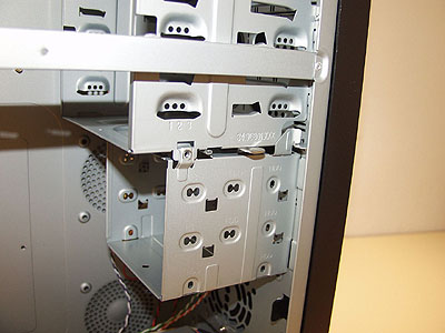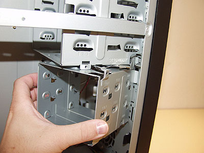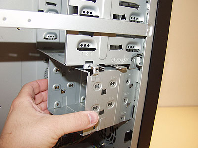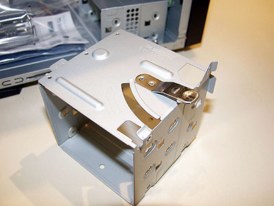 A merevlemezek tartását szolgáló keret szerelhetősége nagyon jó. Egy kar lenyomása után a keretet oldalirányba kiemelhetjük: