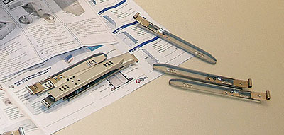 Az ötnegyedes meghajtókat sínek segítségével szerelhetjük be. Ehhez fel kell csavarozni a fém papa-síneket a meghajtókra, majd egy egyszerű mozdulattal be kell tolni az egységet a házba. Halk kattanás nyugtázza a meghajtó rögzülését.