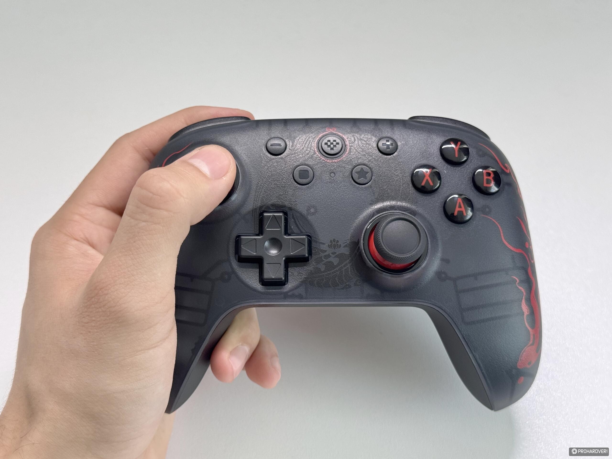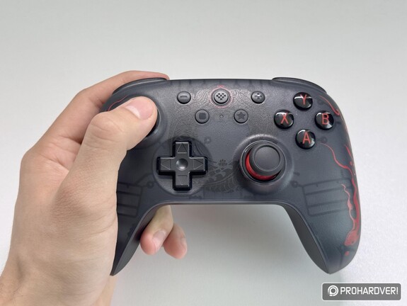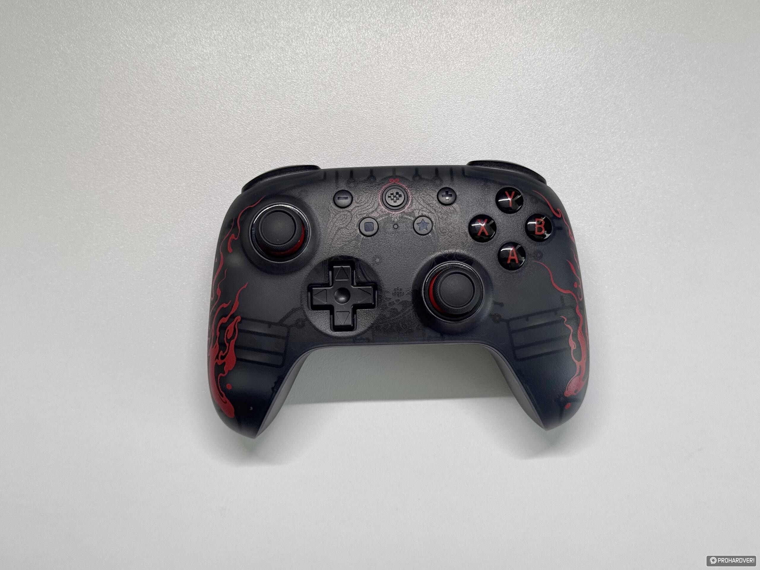 A két kontroller már első ránézésre is eltérő megjelenéssel érkezett hozzánk, ráadásul a gyártó eleve teljesen más színvilágot adott a különböző kiadásoknak. A PC-s vonalon a két tónusú modellek kifejezetten mutatósak, mi azonban egy ennél is karakteresebb verziót kaptunk tesztre, mégpedig a Black Myth: Wukong különkiadást. Ez az áttetsző fekete burkolatával, a vörös feliratokkal és mintákkal, valamint a középre helyezett emblémával kifejezetten látványos darab lett. A Switches modellek ezzel szemben jóval visszafogottabb irányt képviselnek: itt nincs hasonló különleges kiadás, a színválaszték pedig három alapverzióra korlátozódik - sötétkékre, rózsaszínre és kékre –, mi utóbbiból kaptunk egy példányt. A másik fontos különbség pedig a gombkiosztásban érhető tetten: míg a Switchre szánt verzió a Nintendo-féle kiosztást követi, addig a PC-s modell inkább az Xboxos jelöléseket idézi.