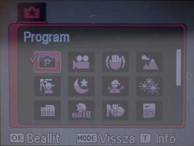 A „mode” gombbal előcsalogathatjuk az üzemmódok mellett a különféle témákat is: