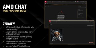 A rendszer képet is tud generálni, illetve alapvető irodai feladatok is rábízhatók, mint például a dokumentumok tartalmának összegzése. A működés tekintetében az AMD Chat llama.cpp szoftverkönyvtárat használ a ROCm 6.3-on, valamint ONNX futtatási környezetet a szabványos DirectML API-n keresztül.