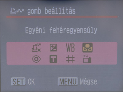 Mint számos más kompaktnál (gyártón belül), a közvetlen nyomtatás gombja programozható, egyedileg határozhatjuk meg a funkcióját. Ennél a készüléknél is nyolc opció közül választhatunk.