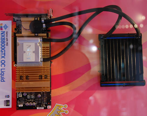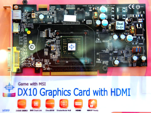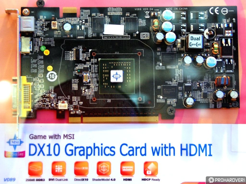 A két cég számos partnere így kénytelen volt olyan vezérlőket kiállítani standjain, amelyekkel uszkve fél év múlva már csak elvétve találkozhat a nagyközönség (leszámítva talán egy-két típust). Az NVIDIA új DX10-es GPU-it egyedül az MSI standján láttuk viszont különböző kártyákra építve, de működés közben ezeket sem mutatták meg, szóval vagy elhisszük, hogy valójában a G8x széria tagjait rakták azokra a NYÁK-okra, vagy nem.
