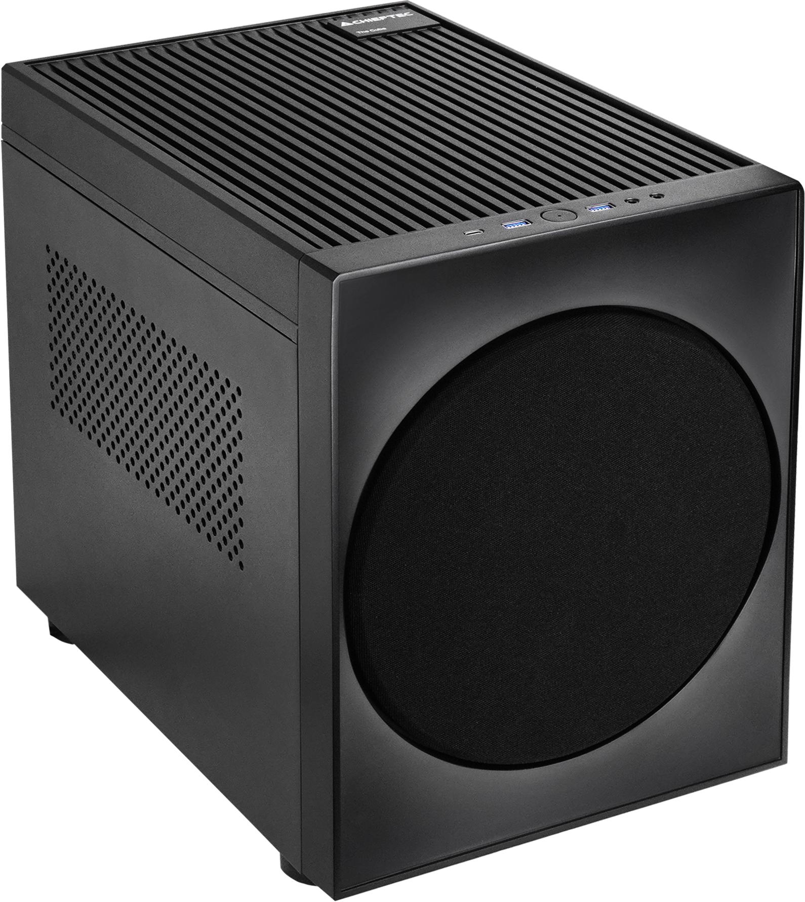 A Chieftec microATX szabványú Cube sorozata hosszú évek szereplője a piacnak, és első generációja még szigorúan a játékosokat szolgálta, amire nemcsak az M1 Gaming Cube név utalt, hanem a viszonylag marcona dizájn, na meg az a tény is, hogy az akkor még létező, gamer-fókuszú Chieftronic almárka égisze alatt jelent meg a piacon. A Chieftronic azóta eltűnt, a Cube Computexen bemutatott harmadik generációja pedig már nem annyira szeretne feltűnő lenni, hanem inkább álcázná magát, hogy akár a nappaliban vagy a tévé mellett is elhelyezhessük. Ennek érdekében pedig egy mélynyomóra emlékeztető külsőt kapott, a hangszóró helyén egy 20 cm-es ventilátorral, mely remélhetőleg orvosolja az M1 egyik legnagyobb problémáját, a gyenge szellőzést.