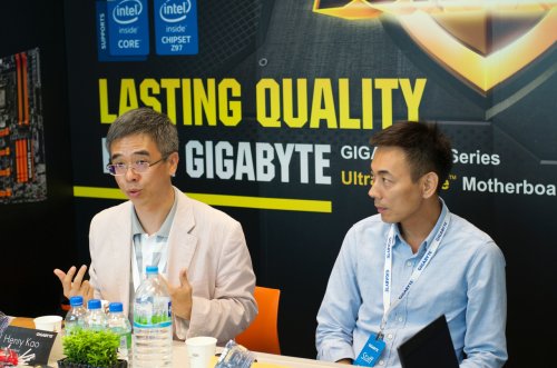 Mi az alaplapos részlegre fókuszáltunk, ami egy teljesen különálló divíziónak tekinthető a cégcsoporton belül. Az első esemény egy sajtótájékoztató volt, melyről hosszabb blogbejegyzésünkben számoltunk be korábban. Ezt két nappal később egy interjú követte, ahol Sir Henry Kao személyében az alelnök, illetve jobbkeze, Jackson Hsu válaszolt a maroknyi újságíró kérdéseire.