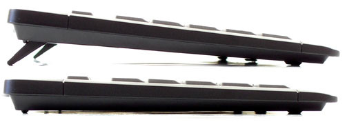 Jó arányérzékkel rakták össze a sallangmentes, széleinél némileg lekerekedő, csuklótámasz nélküli beviteli eszközt. Kissé megbontja a harmóniát a leragadó billentyűk LED-jeinek elhelyezése, de annyi baj legyen. Ellentétben két márkatársával, itt lett volna hely normál vastagságú funkcióbillentyűknek, de mégis vékonyítottakat tettek fel. Ismét az angol kiosztású és feliratú változatot tehettünk próbára.