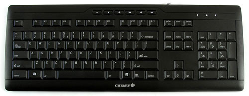 Csuklótámasz híján máshova kellett tenni a hat multimédiás gombot. Ezek most a felső rész közepére kerültek, egy csoportba. Mint látszik, itt már a harmadik, ezúttal egészen notebookos Cherry billentyűformát kapjuk.