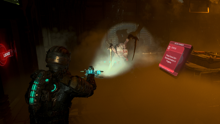 Bár Isaac és kollégái is gyanútlanok leszálláskor, a vériszamós padlók, a kibelezett Ishimura-dolgozók és az egyik újonnan átalakult, még egyenruhája maradékát viselő bestia látványa hamar meggyőzi őket arról, hogy a standard javítási munkálatoknál itt többre lesz szükség. Szerencsére egy futurisztikus bányászhajó millió eszközt kínál a brutális hadviselésre, és így Isaac arzenálja jobbára szikla és ércek aprítására kifejlesztett plazmavágókból, sugárvetőkből, ipari fűrészekből és kinetikus robbantókból áll. Ennél jobbat nem is kívánhatnánk: az Ishimura nekromorf szörnyetegei piszok jól bírják a testsebeket és a fejlövéseket, kivégzésük optimális módja (a lángszóró bőkezű használata mellett) ezért az, ha szó szerint darabokra tépjük őket, ha végtagjaikat valahogy letépjük a helyéről. Egy, a nehéz rakomány mozgatására kifejlesztett eszköz egyfajta gravitációs fegyverként működik: hegyes rudakat, robbanó kapszulákat, vagy végső esetben ellenfeleink letépett karmait hajigálva is biztosítható a túlélés, és ekkor még a lőszerrel is spórolni lehet.
