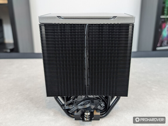 A bordák dizájnja a DeepCoolnál megszokottakat követi: a ventilátor oldalán hegyesebb „hullámokat” találunk, melyek biztosítják a turbulenciát, a kimeneti oldalon pedig egy „kockás” mintázatot adó megoldásnak örülhetünk. A bordázat tetejét a már említett kijelző zárja, ez mágneses rögzítésű, és a borda felszereléséhez le is kell emelni. A hozzá tartozó kábelezés a bordázaton kialakított csatornában, rejtetten fut.