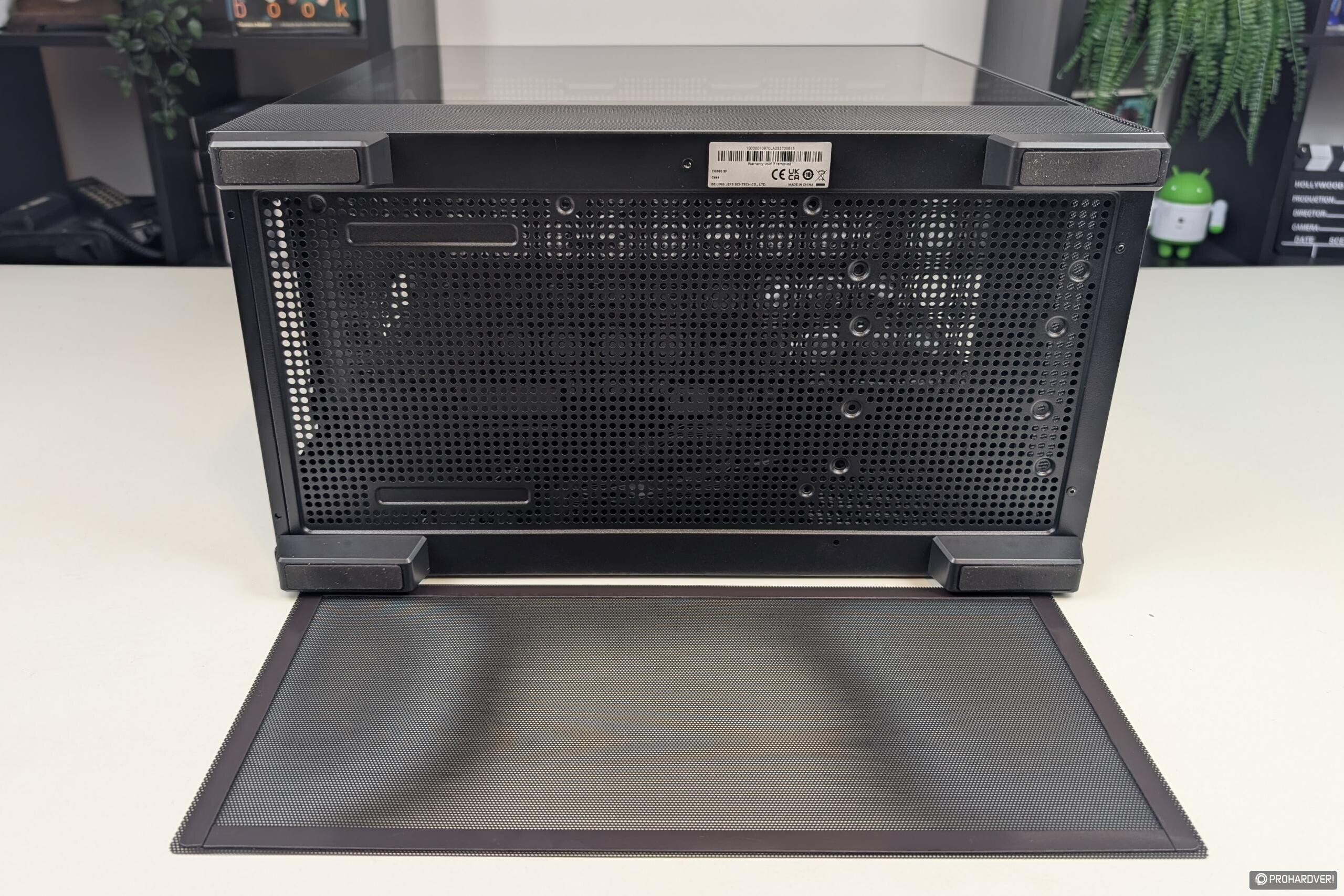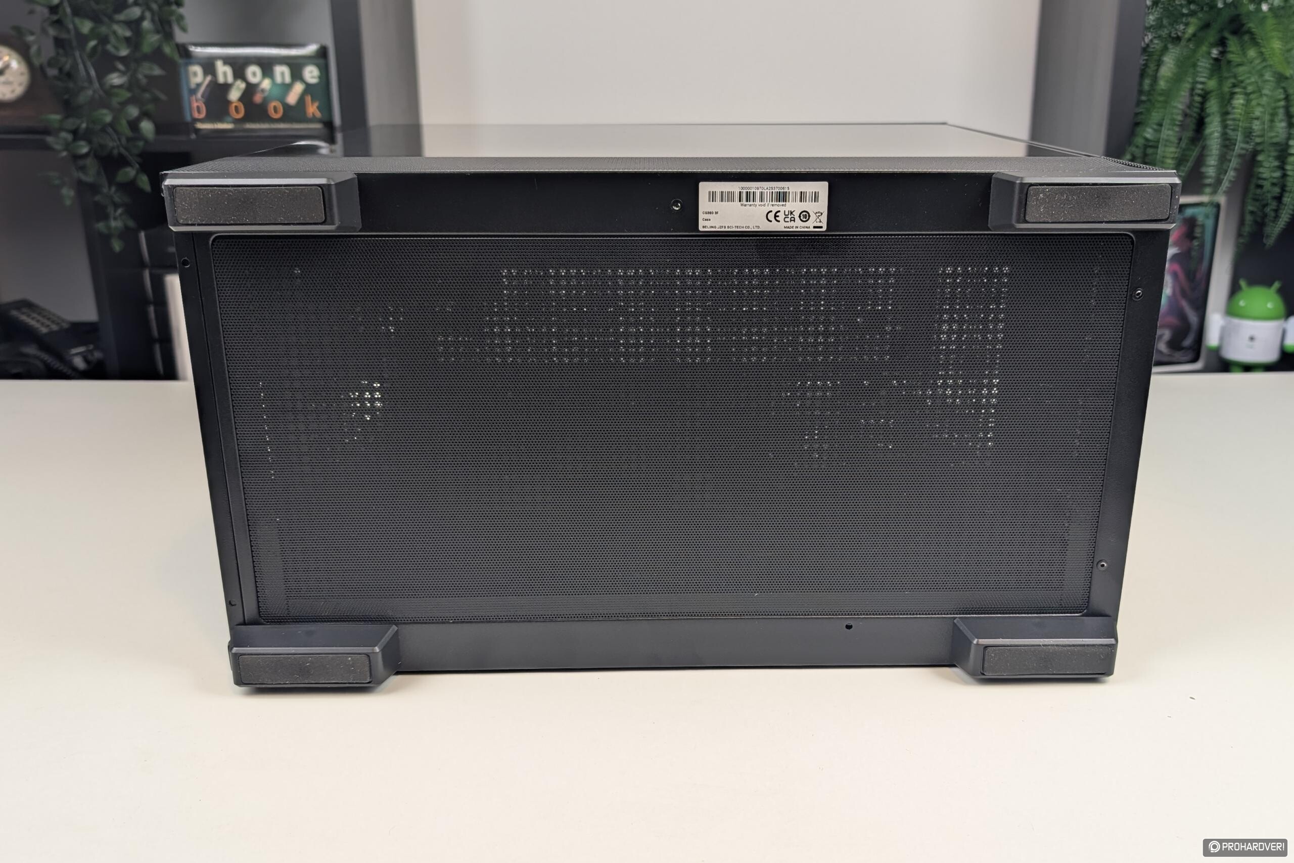 Ahogy az a képeken is látszik, és fentebb is említettük, a CG380 3F kétkamrás kialakítása a külsőn is látszik, az üvegburkolat ugyanis csak a felső részt borítja, az alsó kamra, mely a tápegységet fogadja, elölről, balról és nyilván alulról is szellőzőrácsokkal borított.