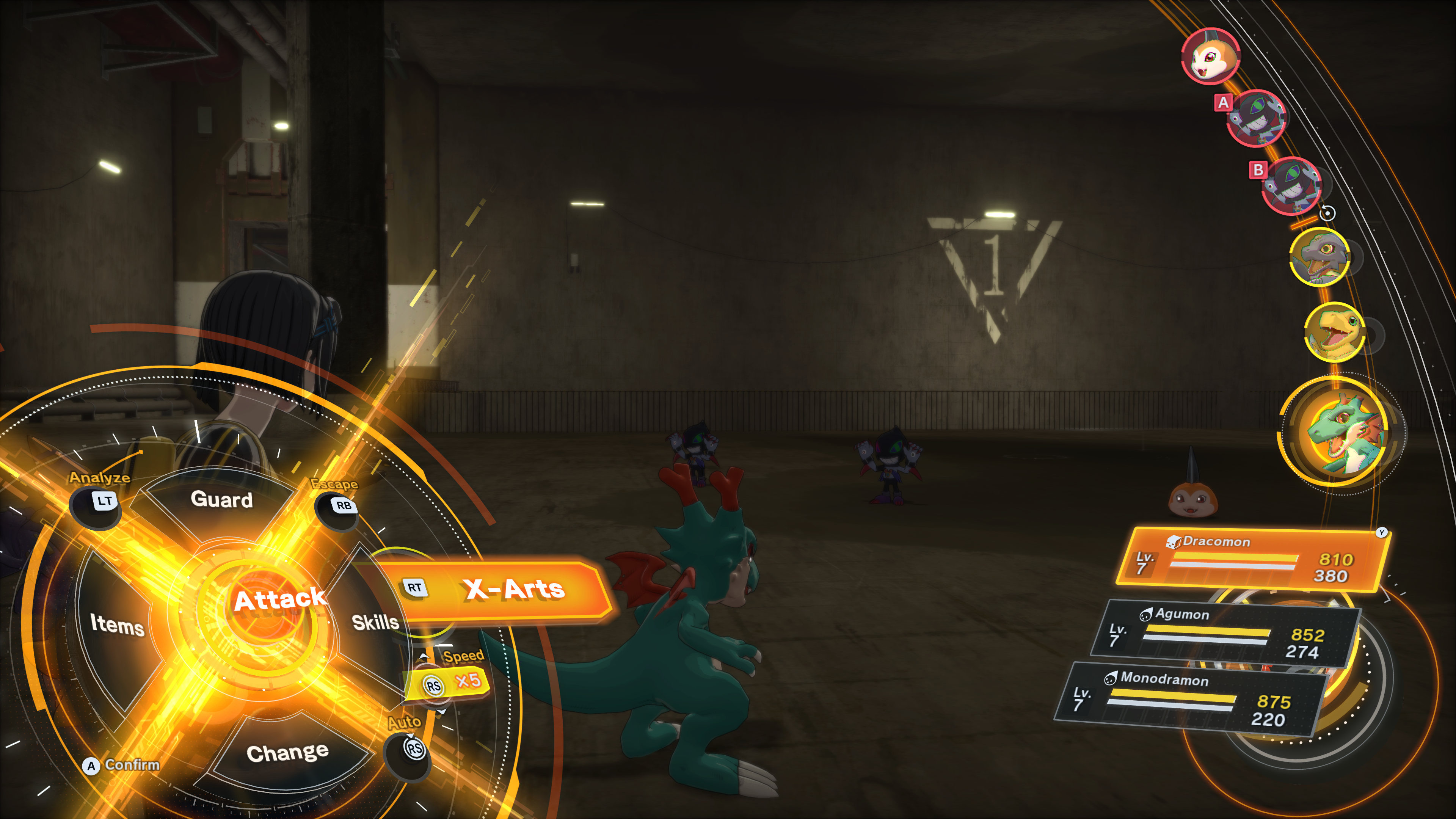 Ami a fejlődést illeti, a digimonok a maguk természetének megfelelően millió módon alakíthatók. Egyfelől a szokásos XP-termeléssel szintet is lépnek, de ennél jóval fontosabb, hogy a megfelelő minimumok teljesítésével teljesen új lénnyé is alakíthatjuk őket – a devolúcióval pedig a nem szimpatikus változásokat vonhatjuk vissza. Különféle tárgyakkal lehet kedvenceinket erősíteni, sőt, a feleslegesnek ítélt jószágokat feláldozva is fejleszthetjük legjobb harcosainkat. Mivel még hősünket is lehet képezni, neki X-Art szupertámadásokat tanítani, a tápolás mélységére igazán nem lehet panasz – szinte minden ötödik percre jut valami érezhető erősödés, vagy legalább átalakulás, így még az unalmasan szürke csatornákban és unalmasan barna barlangokban játszódó dungeontúrások is fenntartják a játékos figyelmét.