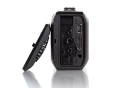 Az egész készülékház egyébként masszív gumiborítást kapott. Többek között ennek köszönheti, hogy kibírja a másfél méteres zuhanást, nem árt neki a por, és háromméteres mélységig vízálló. Az akciókamerák között a nagyobb darabok közé tartozik 10,5 cm-es hosszúságával, 5,2 cm-es szélességével, illetve 3,3 centis magasságával. Ez még épp a tolerálható méret, hisz nem okoz nagy gondot zsebre vágni, egy retikülben vagy kisebb táskában is kényelmesen elfér; tömege 167 gramm.