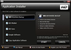A My Passport Elite-on jó nagy adag (kb. 600 MB) segédprogramot találtunk. Ezek közt volt automata biztonságimásolat-készítő, szinkronizáló és néhány Google szoftver. A MioNettel távolról is hozzáférhetünk a winchesteren tárolt adatainkhoz.