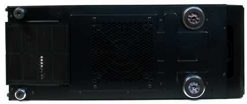 Hátul is látszik annak a nyoma, hogy a tervezők gondolkodtak – ráadásul sikerrel – amikor a Define sorozatot „definiálták”. Tiszta sor, hogy 2011-ben alulra kell tenni a tápot, de az keveseknek jut eszébe, hogy pár okosan elhelyezett furat segítségével úgy alakítsák ki az alsó részt, hogy a tápot felfelé és lefelé néző ventilátorral is be lehessen tenni. Miért jó a kettősség? Mert egyesek azért szeretik az alsó tápos megoldást, mert ilyenkor a gép a házon kívülről hideg levegőt, nem pedig az alkatrészekkel felfűtött meleget szívja be. Egy halk rendszer pedig az átlagosnál melegebb szokott lenni. Mások viszont elviselik az extra hőterhelést a tápon, azt viszont nem, hogy a poros padlóról szívja be a koszt. Azzal a pár furattal sikerült mindkét tábornak kedvezni. A vízhűtéseseknek sem lehet okuk panaszra, két adag lyukat kapnak csöveik kivezetésére. Persze nekik nem sok szükségük van a hangszigetelelésre.