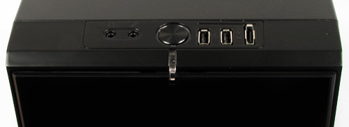 Térjük vissza még egy pillanatra az előlapra! Említettük, hogy a nagy ajtót nem kell majd túl gyakran nyitogatni. Nem, mert a bekapcsolót és a szokásos csatlakozókat felülre tették. Van itt még két USB és eSATA, illetve hang ki- és bemenet. Az USB-k elhelyezésénél vagy szabadnapos volt a homlokzatot és hátlapot kitaláló brigád, vagy elfogyott az ihletük, ugyanis túl közel rakták őket egymáshoz. Egy husibb pendrive-val lazán blokkolható mind a kettő, sőt az eSATA is veszélybe kerül.