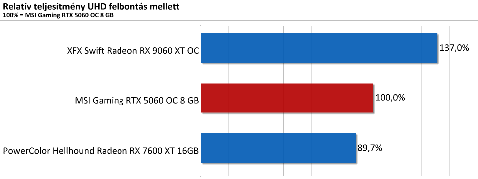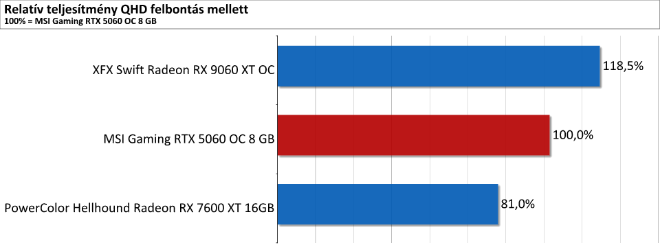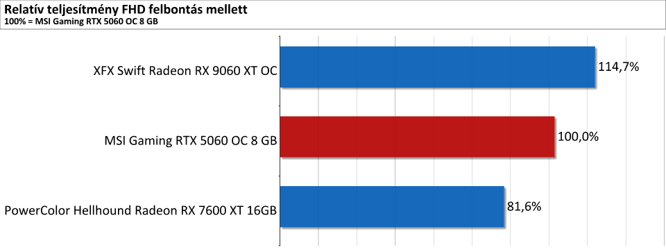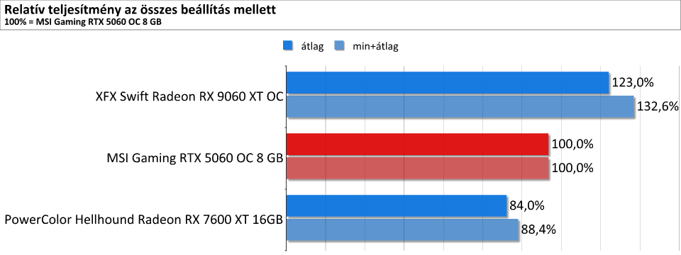 Az előző generációból a 7600 XT 16 GB-os változata újonnan még körülbelül annyiba kerül, mint a most tesztelt kártya – figyelembe véve sebességét, ez már így nem tűnik jó ajánlatnak, használtan viszont még szóba jöhet. Az RTX 4060 jóval lassabb, mint az RTX 5060, így azt nem vennénk számításba, a szóba jöhető vetélytárs inkább a 4060 Ti lesz, melyet ismét csak a használt piacról lehet érdemes beszerezni, mert ebben a pillanatban bolti vásárláskor az árelőny tesztalanyunk javára billenti a mérleget.