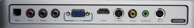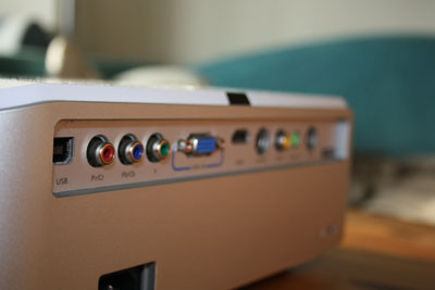 Sokféle csatlakoztathatósági lehetőséget kínál a termék, és ezek mind jól működtek, de az is igaz, hogy huzamosabb ideig csak HDMI kábellel használtuk. Található rajta egy B típusú USB-csatlakozó, amivel számítógépre köthetjük, bár kábelt külön nem adnak ehhez. Ezen kívül helyet kapott a készülék hátulján egy-egy komponens RGB videobemenet, analóg D-Sub VGA, S-Video, kompozit video, egy soros port és természetesen egy audiokimenet is.