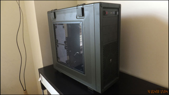 Az elmúlt években egyre divatosabbak lettek a katonai színvilágú számítógép-alkatrészek. A Corsair például Vengeance sorozatba tartozó házait, az Asus pedig TuF alaplapjait kínálja a zöld és barna különböző árnyalataiban, sőt az Akasa repertoárjában színben hozzájuk illő ventilátort is találni. A keenan művésznéven alkotó modder éppen ezekre a komponensekre támaszkodott, és kibővítette őket olyan klasszikus casemod elemekkel, mint a harisnyázott tápkábelezés és a merevcsöves vízhűtésrendszer.