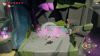 A játék másik fontos pillérét a harc jelenti, e téren a legfőbb probléma pedig sokkal inkább a rendszer sekélyes mivolta. Már Hiro legyezős támadásaival is simán legyőzhetünk minden problémát, de a tatuforma korai megnyitását követően lényegében sosem lesz gondunk a csaták megnyerésével: ez a villámgyorsan száguldozó jószág hatalmasat sebez, ráadásul tökéletesen alkalmas a lövedékek kikerülésére is. Bár a békával elegánsabban lehet hatástalanítani a pajzzsal rendelkező lényeket, és a majomalak fizikai ereje is igen hatékony, számomra az armadillo sebessége és lendülete volt a legélvezetesebb taktika. Sajnos ez elég semmitmondó összehasonlítás, hiszen hosszú távon ez a gurulgatás is lapossá válik – több ellenféltípus, vagy egy mélyebb harcrendszer igen sokat dobott volna a Hirogami által nyújtott élvezeten.