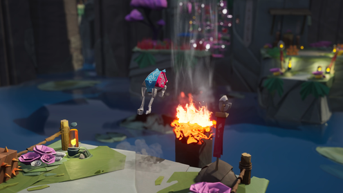De az efféle részletek helyett kezdjük az alapokkal: a Namco két ázsiai stúdiója által fejlesztett (de megdöbbentő módon egy apró japán kiadó, a Kakehashi Games által gondozott) Hirogami egy origamihőst mutat be. Hiro a rengetegszer látott sztoripanelnek megfelelően a világára törő fekete-lila árnyalatokban fortyogó rontás ellen igyekszik felvenni a harcot. A Blight néha egyszerűen szétverhető digitális kockák képében jelenik meg, máskor pedig mindenféle bestiákat formál a szmötyi – de igazán nagy ellenállást ők sem tanúsítanak. Nem, a legfőbb problémát a különálló pályákra osztott Hiro hadjáratában az jelenti, hogy különösebben nem magyarázgatott módon hősünk elveszítette alakváltó képességeit, és így ezek visszaszerzése kötelező feladat lesz. A színes origamipapírból hajtogatott harcos először tiszta lappá tudja magát szétbontani, így szűk helyeken is átsuttyanhat, illetve a tűz forrósága az ugrásainál sokkal magasabbra tudja felhajtani. A későbbiekben Hiro visszakapja három állati formáját: a tatu természetesen nagy sebességgel gurul, a béka hatalmas ugrásokra és tottyanásokra képes, a majom pedig liánokon lengedezik és sziklákat zúz össze. Időszakosan, egy-egy szakaszra más formákat is kapunk, ezek legalább kicsit feldobják a játékmenetet.