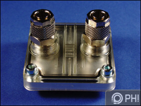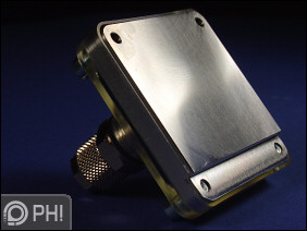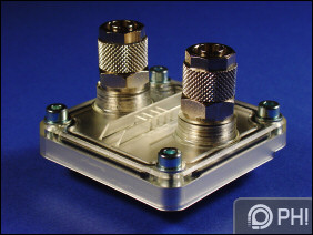 Kapunk egy Flatflow SL alumínium hűtőblokkot, amelynek átlátszó borítását négy imbusz csavar szorítja egy gumi tömítéssel a fémhez. Jól látszik a blokk egyszerű lelki világa, mindössze négy fal befolyásolja a víz áramlását az egyébként is igen vékony üregben. Esztétikus ugyan a blokk, de kialakítása, és anyaga miatt várhatóan ez lesz a szűk keresztmetszet a szett hűtőteljesítményében. Ne feledjük, ez az innovatek egyetlen alumínium blokkja, és a duál radiátoros szetteket nem tekintve a legfontosabb teljesítménykülönbség az eltérő CPU hűtők miatt jelentkezik.