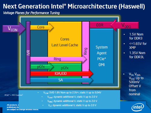A Haswell lapka második új lakója a feszültségszabályzó kis chip (voltage regulator), mely korábban valahol a CPU-foglalat közelében volt megtalálható, és annak típusáról az alaplap tervezője gondoskodott. Ennek kiviteléről és ezzel együtt képességeiről mostantól az Intel gondoskodik. Ezzel ismét egy komponenssel kevesebb kerül fel az alaplapokra, ami a gyártási költségekre, illetve a szükséges területre minden bizonnyal jó hatással van, ugyanakkor az alaplapok tervezőinek kezét kissé megkötheti.