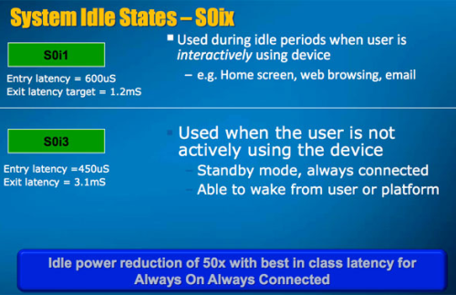 A fenti ábrán látható S0i1 és S0i3 módokon felül megjelentek a C6 és C7 jelzésű energiatakarékossági szintek is, bár előbbieket csak az Y és U szériás mobil megoldások estében lesznek aktívak.