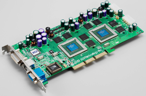 XGI: For a more in-depth information, you check check on XGITech.com under the product section, there shall be a white paper explaining clearly how it works. Simply put, the two GPU works as follows: The master GPU is connected to the AGP interface and the Slave GPU is connected to the master GPU. Each of the two GPUs has its own local frame buffer, which is what we called DRAM. Basically, the master GPU will process frame 1, 3, 5, ... and slave GPU will process frame 2, 4, 6, ... and so on.