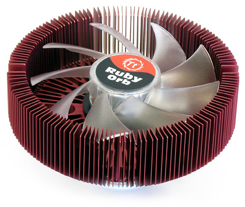 Vannak még ma is olyan, elég méretes processzorhűtők, melyek nem élnek a hőcsövek áldásos képességével, a nagyszerű hővezetéssel, amivel távolra is el lehet küldeni a hardver melegét. Ilyen hűtő a Thermaltake Ruby Orb, mely nevéhez híven vörös bordákat kapott. Akinek nem tetszik ez a szín, más árnyalatú Orbokat is talál a Thermaltake-nél.