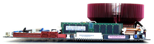Bár a mi Asus P5E3 DeLuxe alaplapunknál nem volt gond, komolyabb hűtős – mondjuk Gigabyte – deszkáknál érdemes figyelembe venni az északi hídra szerelt fémtömb méretét.