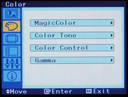 Bekapcsolás után először az OSD-t tekintettük át, a 930BF sokak örömére nem gombtalan (ez inkább a drágább modellekre jellemző), az OSD menürendszere pedig a Samsung monitoroknál megszokott elemekre épül. A menürendszerben minden olyan opciót megtalálunk, amire szükségünk lehet, és amit egy mai modern monitornak ismernie kell. A színhőmérséklet fokonként nem állítható, de lehetőségünk van a tónus állítása mellett a színcsatorna beállítására is. A MagicColorral egy önműködő automata, a monitor szerint legjobb beállítást alkalmazhatunk, mi azonban saját magunk állítottuk be a színeket, fényerőt és kontrasztot a teszt során.
