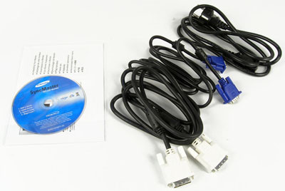 A dobozban a kibontás után egy-egy driver CD-t, tápkábelt, D-Sub és DVI kábelt találtunk. A monitor kávája és talapzata elkülönítve voltak becsomagolva, vagyis a talpat saját kezűleg kell felhelyezni. A művelet nem igényel komolyabb szakképesítést, egyetlen becsúsztatás, majd kattanás után a monitor már egyben is van, és a szétszedés sem bonyolultabb ennél.