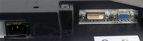 A monitor hátuljának alján találhatóak a csatlakozók. Manapság már alapkövetelmény az analóg mellett a digitális jelbemenet is, a 930BF itt is bizonyítja abszolút egyszerűségét, se USB, se FireWire, se audio, csak a jelbemenetek és a beépített táp csatlakozói találhatóak meg. A kábelek bekötése egyszerű és problémamentes, nem ütközünk bele semmilyen alkatrészbe.