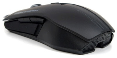 Lapos, viszont jó széles az egér háta, így elsősorban az átlagosnál szélesebb tenyerűeknek lesz kényelmes a hatalmas fő gombok révén ujjas és karmos fogással, átlagos vagy kisebb kéz esetén pedig a tenyeres fogás is szóba jöhet. A fő gombok nagyon közvetlenül és pontosan járnak, az oldalsók viszont kissé olcsó hatást keltenek, de észben kell tartani, hogy itt tényleg egy viszonylag kedvező árú egérről van szó. Görgőjén alig érezni az egyes lépések közti váltást, az alatta lévő gomb kicsit nehezen jár, oldalra pedig nem dönthető. Az egér hátán lévő gombbal három lépésben váltható az optikai érzékelő felbontása, 1000, 1600 és 2000 dpi között.