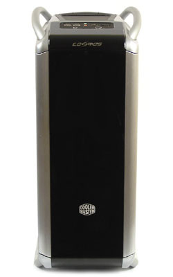 Csak azért nem ültünk seggre attól, amit benne találtunk, mert korábban már láttuk. Csak azért nem szakadtunk bele, amikor kivettük a dobozból, mert előtte már megemeltük, és tudtuk, hogy közel 20 kilós. Azért nehéz, mert hatalmas, ráadásul vizuálisan is óriásinak tervezték. Kávézóban asztalnak is elmenne a 60 x 60 centiméteres, szálcsiszolt alumíniumból készült oldallap, ráadásul egyetlen apró szellőzőnyílás sem töri meg az óriási felületet. Nagyságát picike Cooler Master felirat hangsúlyozza tovább. Fölfelé húzták a formát a lakkozott, fekete betétes, teljes előlapot lefedő ajtóval, amit nem tör meg sem csatakozó, sem kijelző, sem előlapi szellőzőnyílás, csak egy picike gyári logó. Aki megszédülne a látványtól, az két vaskos alumíniumcsőbe kapaszkodtat, melyeket minden bizonnyal elsősorban sokkoló látványelemnek szántak. Persze az alsó kettő lábként is szolgál, kicsit megemelik a házat.