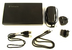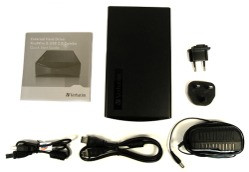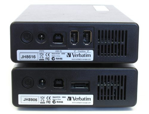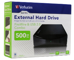 A Verbatim tavaly jelent meg többcsatlakozós, otthoni használatra szánt, 3,5"-os winchestereinek frissített változataival. A rackeknek portjaik szerint háromféle típusuk van: csak USB-s, FireWire és USB kombós, illetve eSATA és USB kombós változatok szerepelnek a gyártó kínálatában. E két utóbbi 500 GB-os verzióját vizsgáltunk meg közelebbről. A kétféle csatlakozós modellek három méretben kaphatók: a FireWire-ös 500 GB, 750 GB és 1 TB, míg az eSATA-s 500 Gb, 1 TB és 1,5 TB kapacitású háttértárakkal. A két winchester hasonló dobozban érkezett, a Verbatim kékje mellett a zöld árnyalatai díszítették a csomagolást.