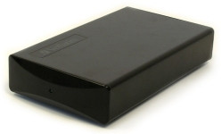 A két külső rack teljesen ugyanúgy néz ki. Matt fekete fém borításúak, csak az előlapjuk készült fényes műanyagból, aminek a közepén egy parányi zöld LED jelzi az aktivitást. Felső részükön a gyártó méretes logója látható. A külső merevlemezek mérete is megegyezik: 202 mm x 114 mm alapterületűek és 40 mm magasak.