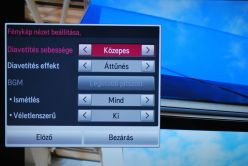 Sajnos lejátszási lista a fényképek esetén nem állítható össze, így azt előzetesen kell megtenni egy számítógépen, viszont a diavetítés funkciónál a képváltás sebessége állítható, lehet zenét pakolni a fotók alá, és az ezek közti átmenet is feldobható néhány effekttel. Az egyes képbállítások rögtön elérhetőek akár fotók nézegetése közben is, így nincs szükség arra, hogy a főmenüben keresgessük a szükséges funkciókat vagy a módosítani kívánt paramétereket. A képek eredeti méretét és arányát megtartja, de ez azért ma már alapelvárás, mint ahogyan az is az lenne talán, hogy a JPG kiterjesztésű képeken kívül mással is boldoguljon. Ám itt nem váltak be számításaink, hiszen se TIFF, se PNG, se BMP fájlok megjelenítése nem jöhet szóba, hogy a GIF-ekről már ne is beszéljünk.