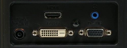 Nem bántak túl nagyvonalúan a be- és kimenetekkel sem, csak a kötelező analóg (D-Sub), DVI, HDMI és 3,5 mm-es jack audiót leljük a hátoldalon, DisplayPortot felesleges keresni. A tápcsatlakozó sem a hagyományos, ami annak köszönhető, hogy a tápegység feladatát egy notebooktöltőhöz hasonló külső egység látja el.