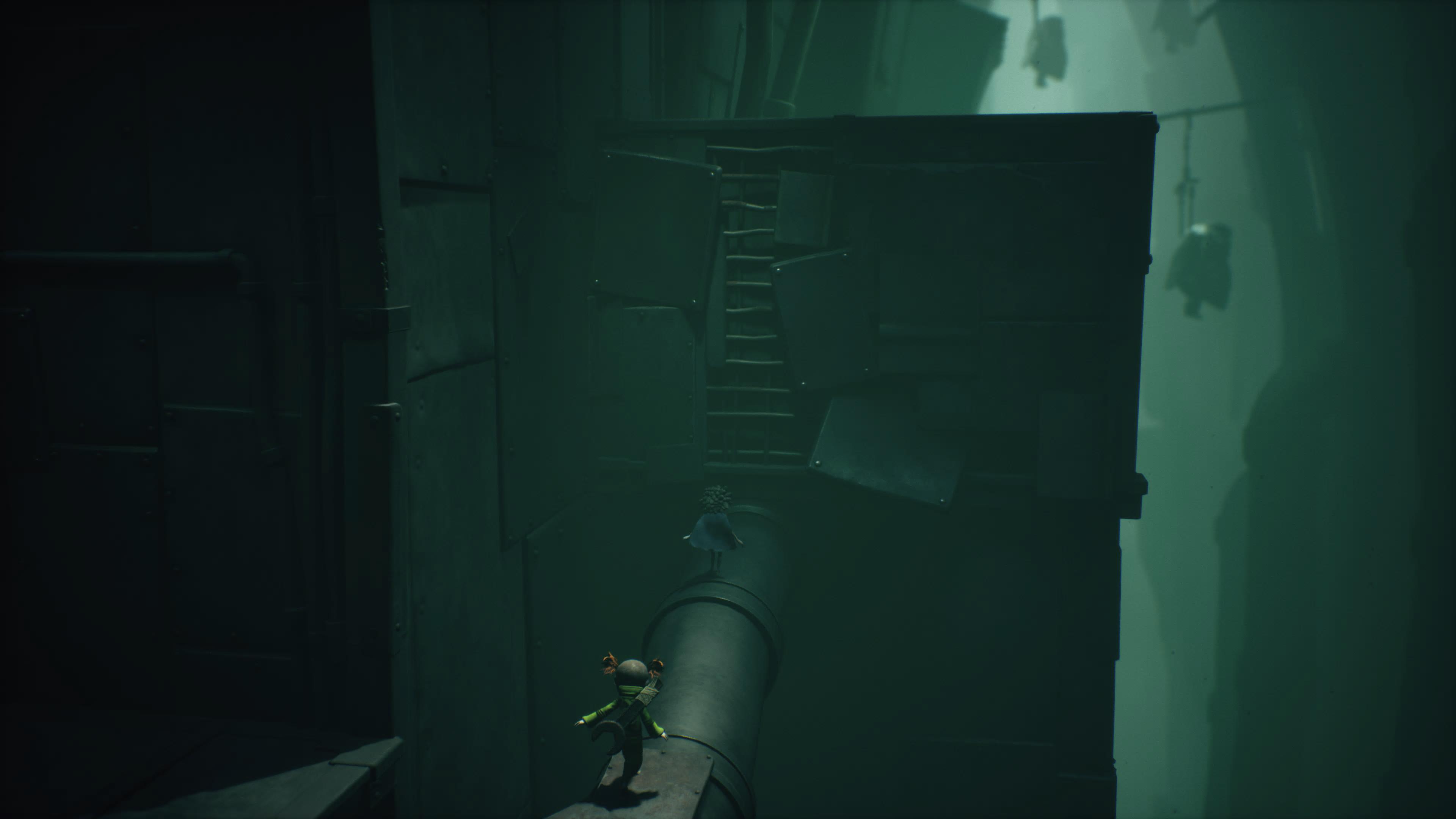 A Little Nightmares III továbbra sem a klasszikus értelemben vett horrorjáték. Itt nincsenek véres jelenetek, hirtelen ijesztések vagy hangos sikolyok – a rettegés sokkal inkább pszichológiai természetű. A félelem forrása a környezetből fakad: a túlnőtt bútorok, a szűk terek és a szürreális figurák mind azt az érzést erősítik, hogy valami nincs rendben a világgal. Ugyanakkor ezúttal a félelem nem ugyanúgy hat, mint a korábbi játékokban: mivel az első pillanattól az utolsóig velünk van egy társ, az élmény sokkal kevésbé magányos, és ezzel a korábbi részek fojtogató atmoszférája kissé oldódik. Az együttlét biztonságérzetet ad, ami csökkenti a rettegés intenzitását – a játék továbbra is sötét és nyugtalanító, de már nem az a fajta, szinte tapintható szorongás, amit a sorozat első két része mesterien tudott megidézni. A perspektíva ezúttal is oldalnézetes, 2.5D-s megoldással operál, ami egyszerre mutatja be a hátteret és a játéktér mélységét. Ez a stílus maradt a Little Nightmares védjegye, de a harmadik részben ismét szembetűnik néha a távolságérzet hiánya: sokszor nehéz pontosan megítélni, hogy egy palló vagy kötél milyen messze is van, és emiatt gyakran a mélybe zuhanunk. Ez nem új jelenség, de sajnos most is előfordul, és még mindig bosszantó tud lenni, amikor a karakter egy rosszul érzékelt ugrás miatt veszíti életét – és még zavaróbb, ha ezt kooperatív módban felváltva adjuk elő.