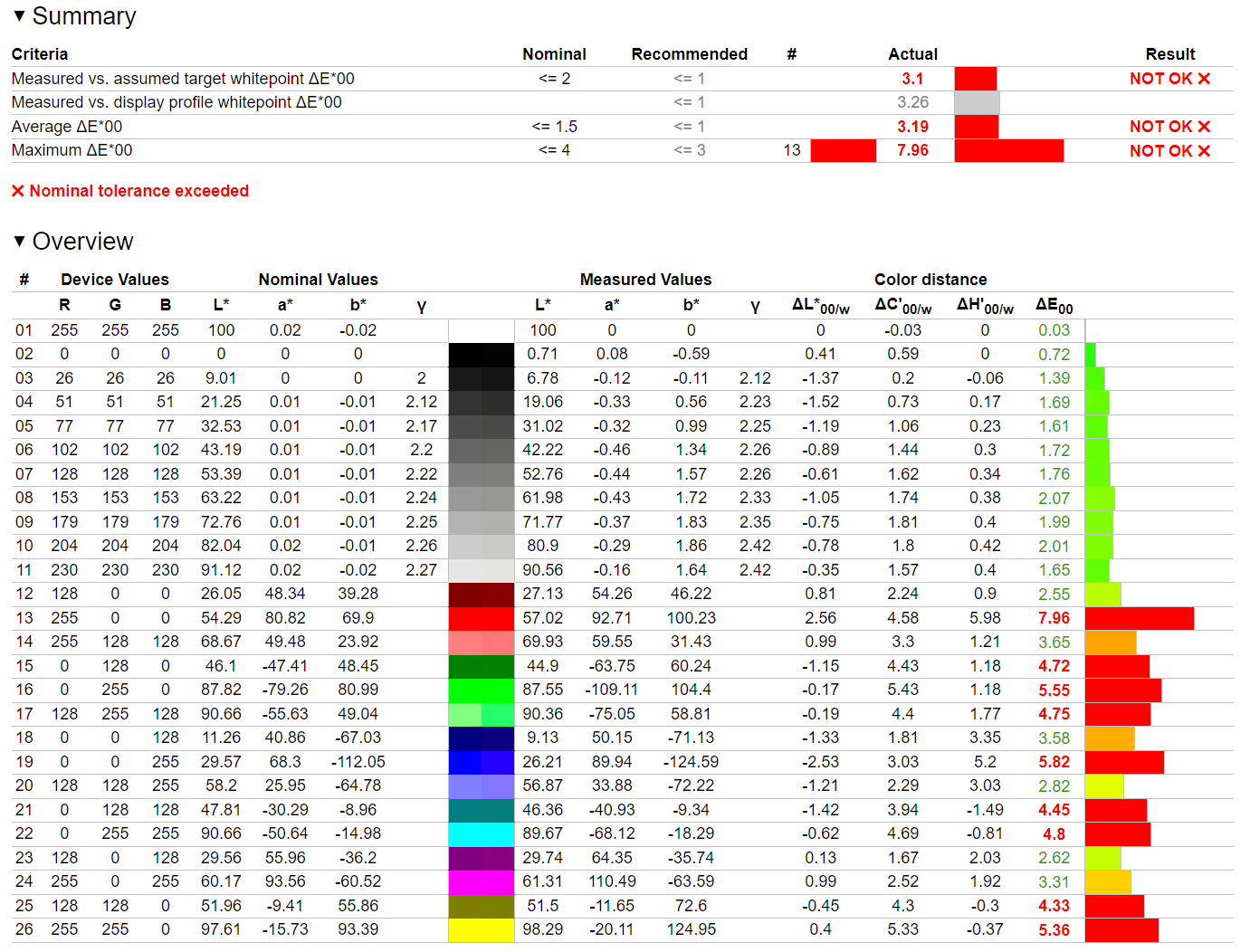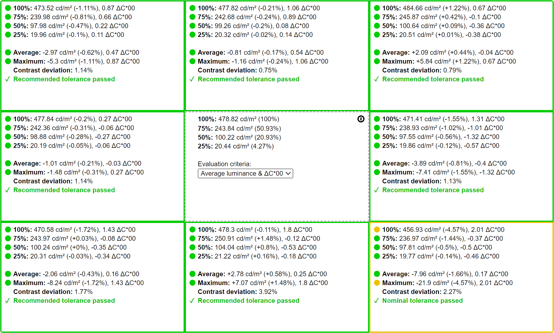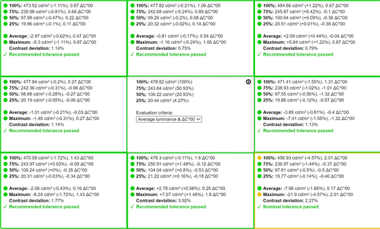 A háttérvilágítás egyenletessége kiváló, a színhűség pedig elfogadható – az MSI láthatóan nem kínál gyári kalibrációt, de a panel képességeiben ott van a lehetőség a tökéletes színvisszaadásra is. Mindenesetre az említett kalibráció nélkül az átlagos delta E értéke 3,19, ami nem rossz eredmény.
