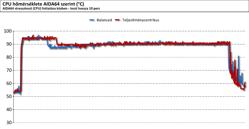 A fogyasztási adatok mindenesetre elég impozánsak, hiszen hosszabb távon is 120 watt feletti TDP-t láthatunk a Core i9-13980HX-től, és bizony a GPU is hozza a specifikációkban szereplő 175 wattos TGP-t. A hőmérsékleten látszik viszont, hogy a hűtésnél lejjebb adhattak volna a nagy hangerőből, különösen a teljesítménycentrikus profil esetében.