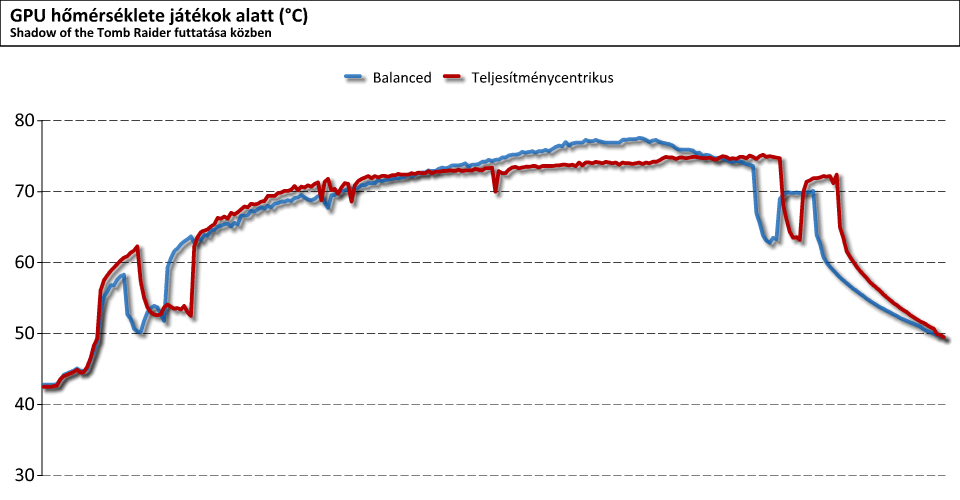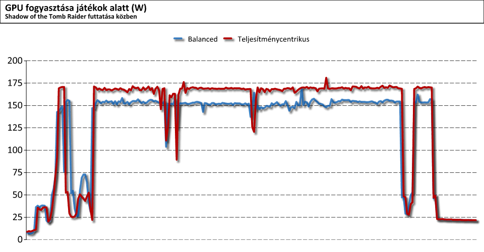 A hardverrel kapcsolatban a grafikonok jól mutatják, hogy a teljesítményre koncentráló profil a GPU viselkedésén módosít többet, ezt érhettük tetten az előző oldalon is, ahol a kizárólag CPU-limitált méréseknél csak minimális volt a gyorsulás.