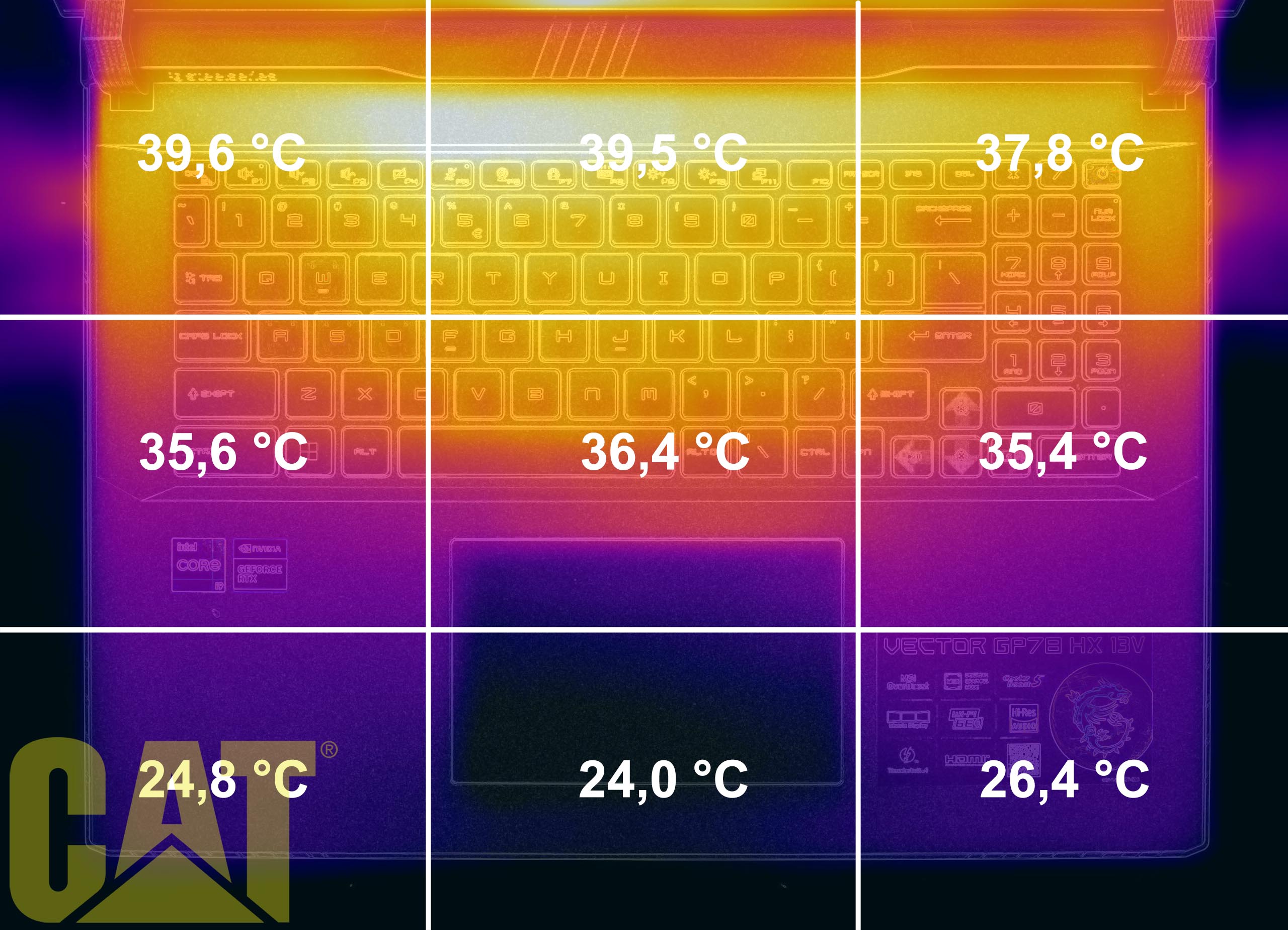 Ha egy szóval szeretnénk jellemezni az MSI Vector viselkedését, akkor azt mondanánk: hangos. Terhelés nélkül ugyan általában állnak a ventilátorok, de indítsunk el bármit, és máris elkezdenek zúgni a légkavarók. Az alapértelmezett Balanced profillal hangjuk még épp hogy elviselhető, de a maximális teljesítményt kínáló Extreme Performance-nál már eléri a zavaró szintet a hangerő. Ez alapján a játékokhoz mindenképpen érdemes fülhallgatóval, headsettel készülni, de filmnézés közben is számíthatunk arra, hogy a notebook zúgó aláfestéssel járul hozzá a hanghatásokhoz.