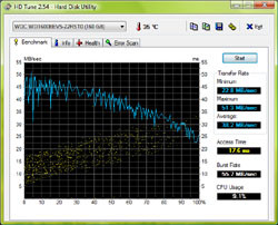 A méretes notebook merevlemezét, egy 160 GB-os, 2,5 hüvelykes Western Digital Scorpiót a PR200-as ugyanilyen típusújával vetettük össze.