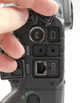 A csatlakozók zöme a váz bal oldalára lett elhelyezve. Itt található a GPS/WLAN, az USB, a mikrofon, a fejhallgató, az Ethernet és a HDMI aljzata. Külön dicséretet érdemel a gyártó a gumifedelek kialakítása miatt. Végre nem egy vagy két hatalmas, egybefüggő, ormótlan és kezelhetetlen gumifedél fedi le a felületet. A vakuszinkron és a vezetékes távkioldó csatlakozásai továbbra is az előlapon találhatóak (szintén külön-külön dugó alatt).
